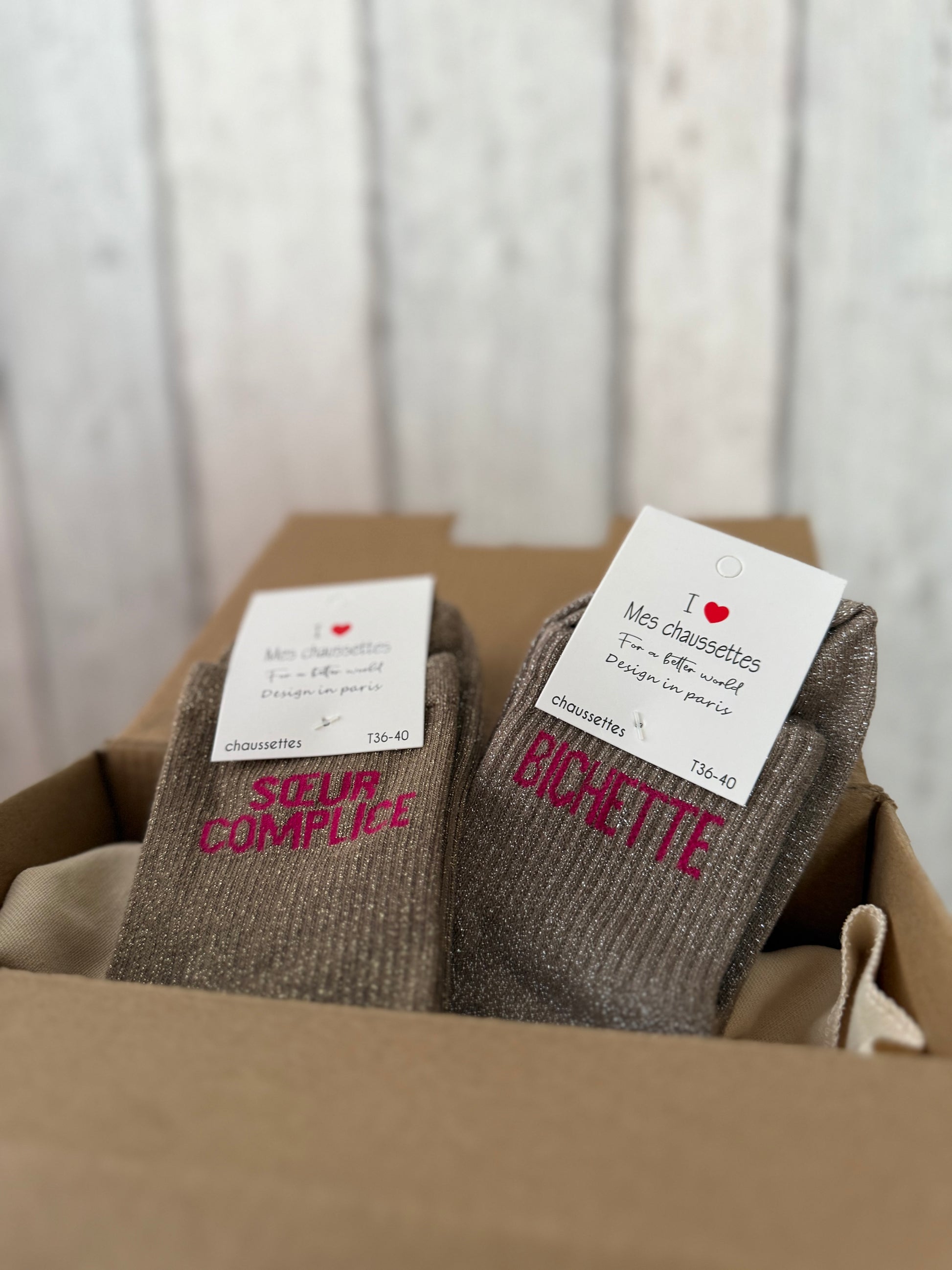 Au choix, le coffret Cocon t’offre la possibilité de choisir deux couleurs de ton choix pour tes chaussettes à paillettes ! ✨